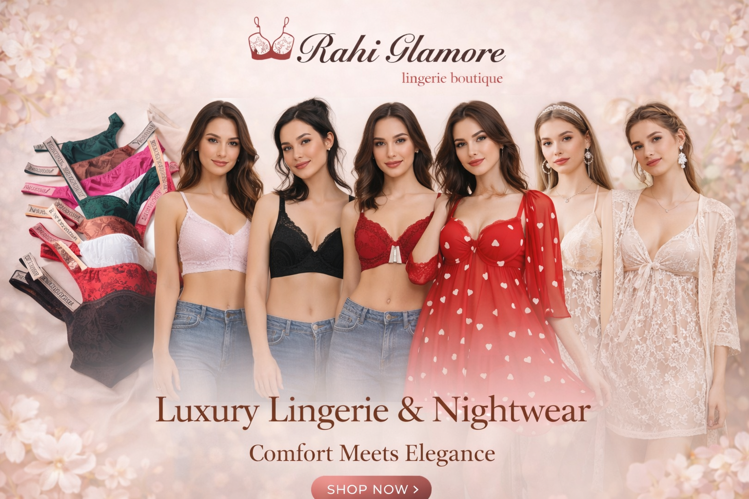 Women’s Seamless Butterfly Embroidery Comfort Bra & High-Waist Shaper Set