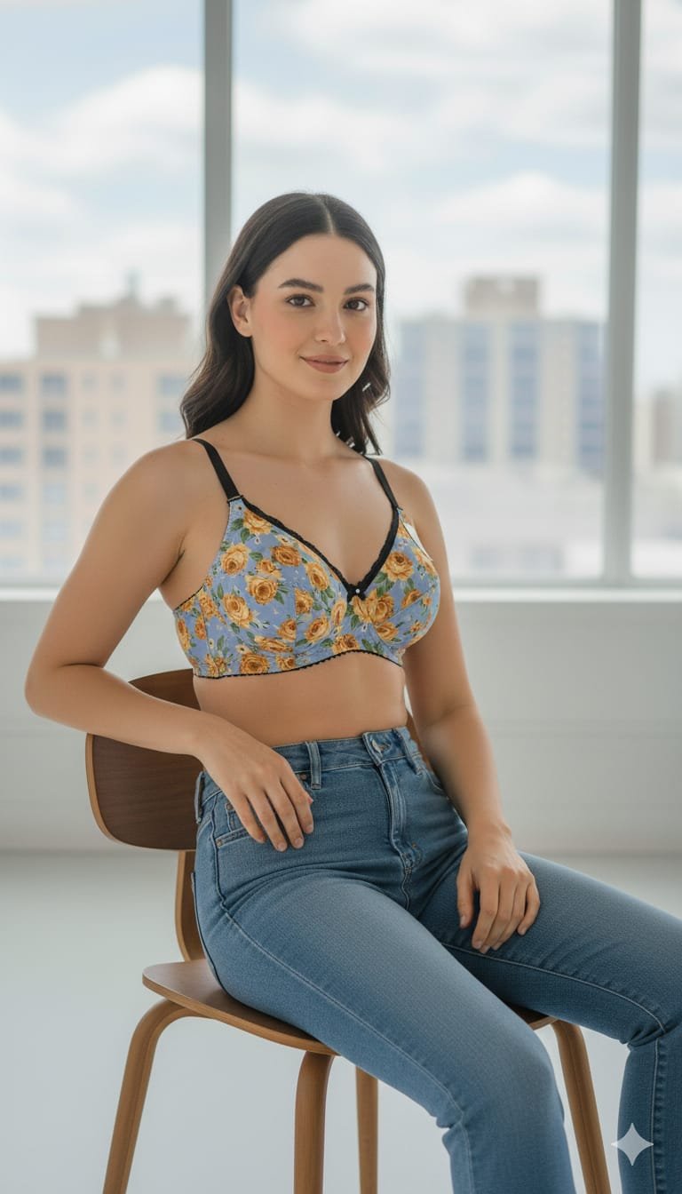 A lightweight bra designed for daily comfort. It features a thin single layer of foam padding to prevent show-through while maintaining a natural shape. The fabric is usually a breathable cotton-blend, ideal for wearing under lawn suits or casual shirts.