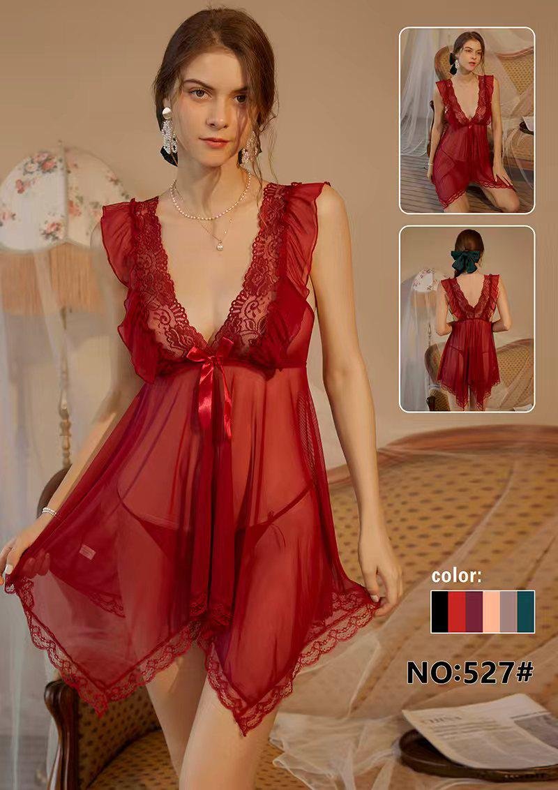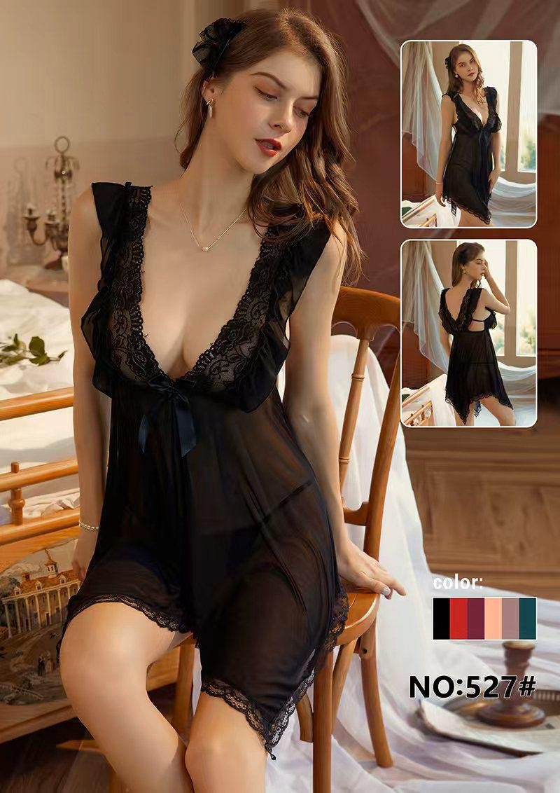 Women’s Deep V-Neck Sheer Mesh Babydoll Nighty